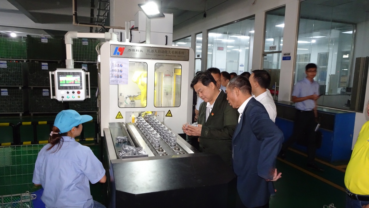 梁耀鈞領(lǐng)導(dǎo)一行在我司總經(jīng)理黃均泉、支部書記陳煥祿等領(lǐng)導(dǎo)的共同陪同下,先后到我司壓鑄車間和CNC車間生產(chǎn)現(xiàn)場(chǎng)的自動(dòng)化設(shè)備進(jìn)行參觀了解,詳細(xì)了解廣東力源科技股份有限公司發(fā)展情況、產(chǎn)品生產(chǎn)流程和操作過程;總經(jīng)理黃均泉特別介紹了新引進(jìn)及自主研發(fā)的自動(dòng)化設(shè)備操作系統(tǒng),響應(yīng)新時(shí)代時(shí)期追求科學(xué)創(chuàng)新的發(fā)展需求,得到現(xiàn)場(chǎng)參觀的梁耀鈞等領(lǐng)導(dǎo)同志的充分認(rèn)可。