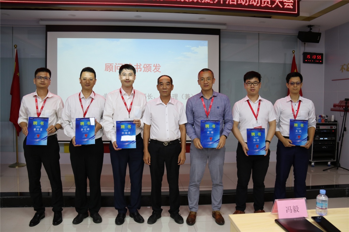 下午15:00分,大會在主持人的熱情帶動下正式拉開帷幕,此次參會人員涵蓋公司中高層管理人員,包括總經(jīng)理、副總經(jīng)理、運營總監(jiān)等共計39余人,出席的顧問老師有項目導(dǎo)師、零牌顧問機(jī)構(gòu)首席顧問懷老師等7人。會議開始,首先由運營總監(jiān)馮總宣布活動推進(jìn)組織委員會架構(gòu)的組成,同時簡單陳述了架構(gòu)的職能;之后由公司董事長兼總經(jīng)理黃總為各顧問老師頒發(fā)項目聘書,并進(jìn)行了合影留念。